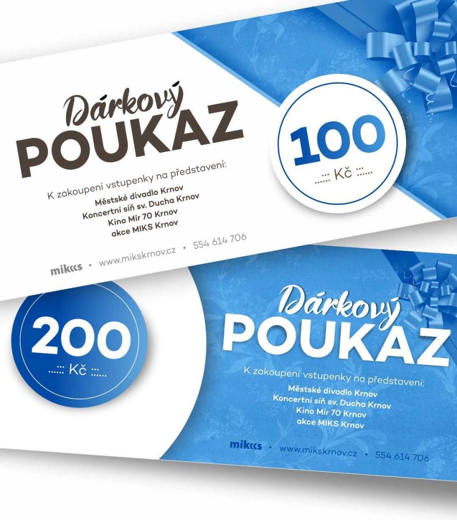 Dárkové poukazy lze použít k zakoupení vstupenek na akce, které pořádá MIKS - představení v kině, divadle i koncertní síni a lze za ně zakoupit vstupenky na Krnovské hudební slavnosti.